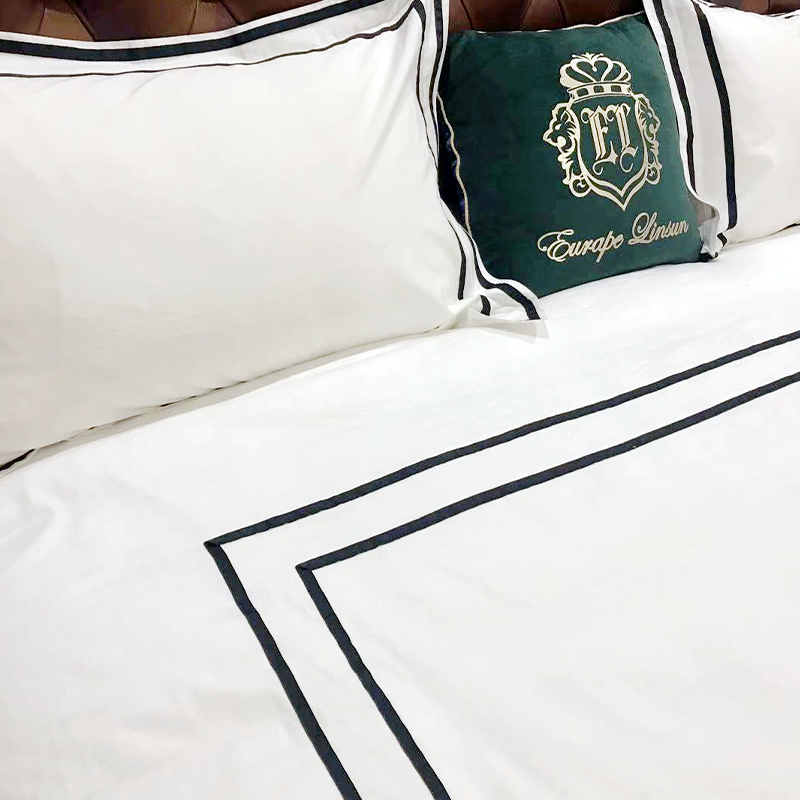 Az ágyneműt kiváló minőségű, fekete bordázott szalagok díszítik, így a szálloda vászon elegánsabb és nemesebbnek tűnik. A kiválasztott szalagok nem halványulnak le vagy nem lazulnak, és sok színben kaphatók. Párosítva a magas számú és nagy sűrűségű szatén anyaggal, amely 5 csillagos szállodai élményt nyújt az ügyfeleknek.